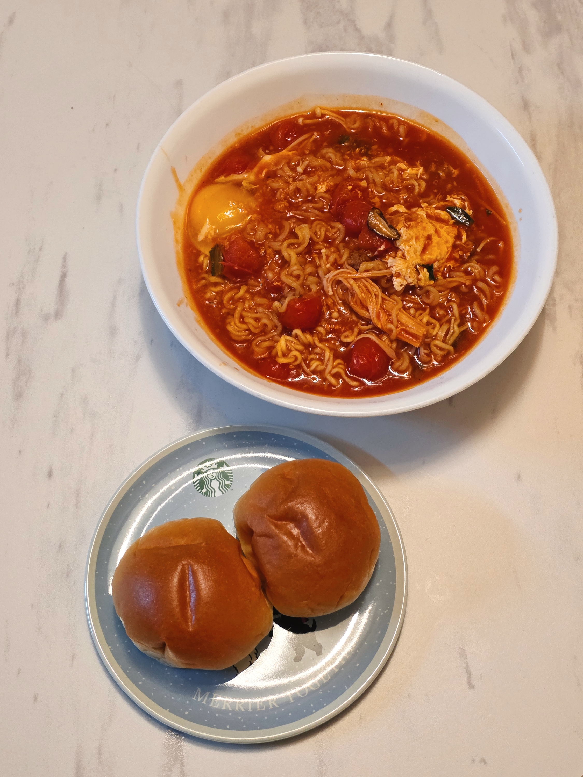 맛: 딱 예상했던 토마토라면맛인데 좀더 스프가 맵고 달지 않은 라면으로 끓이는게 더 맛있을거같다 열라면이나 맵진 권장
