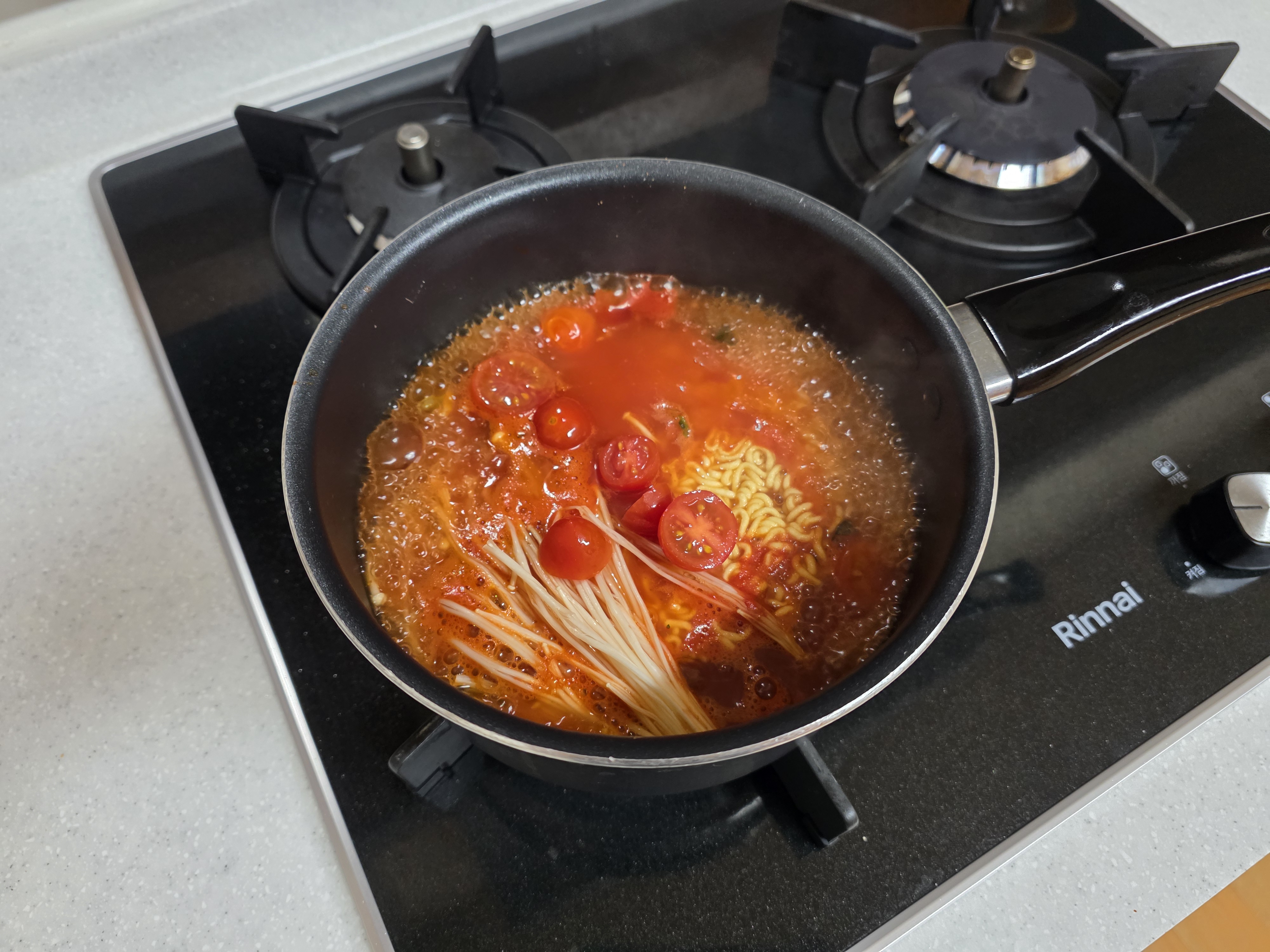 그리고나서 끓는동안 토마토를 썰려고 했는데
